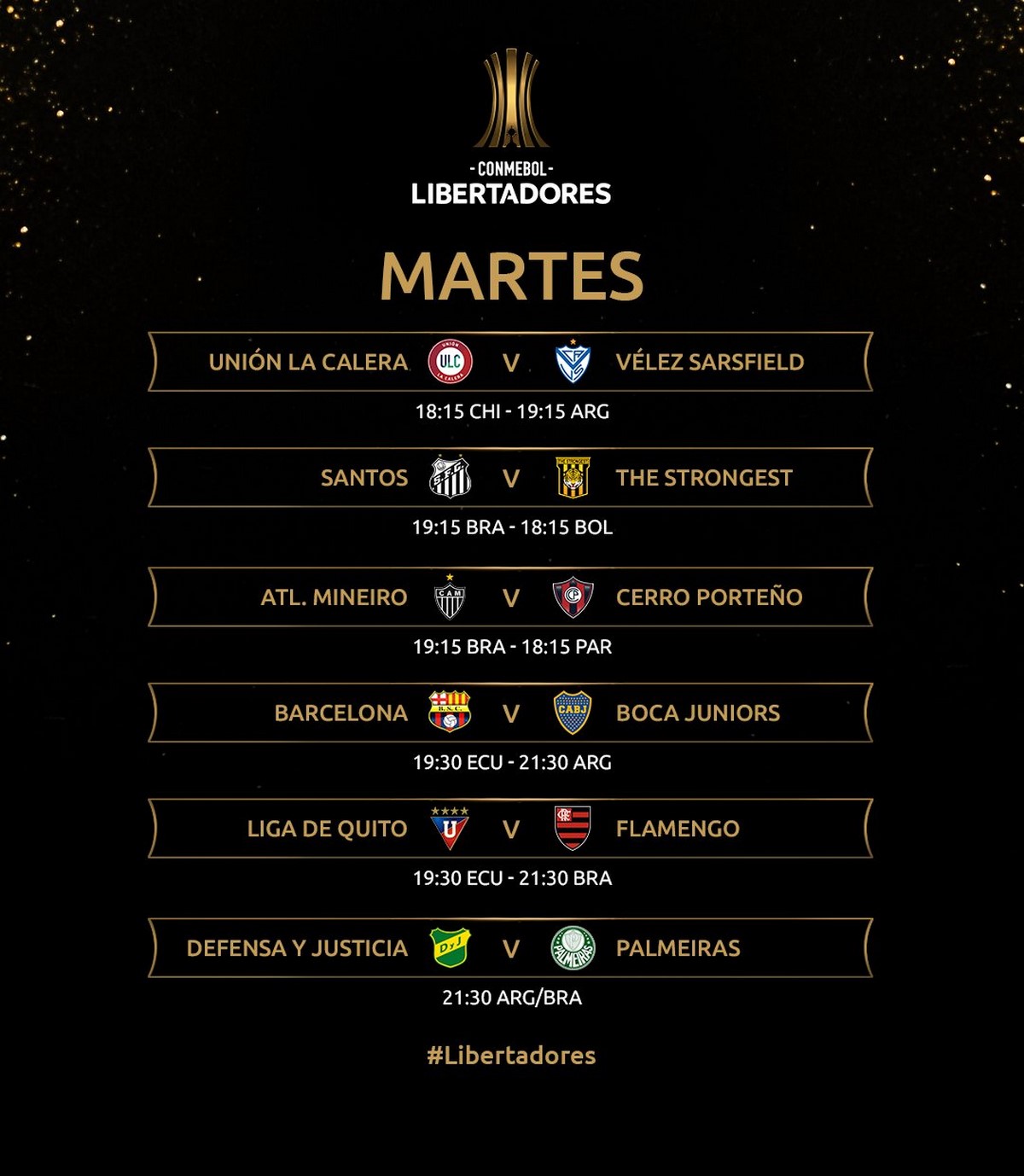 Programación de la Libertadores, en horario de países de equipos en competencia