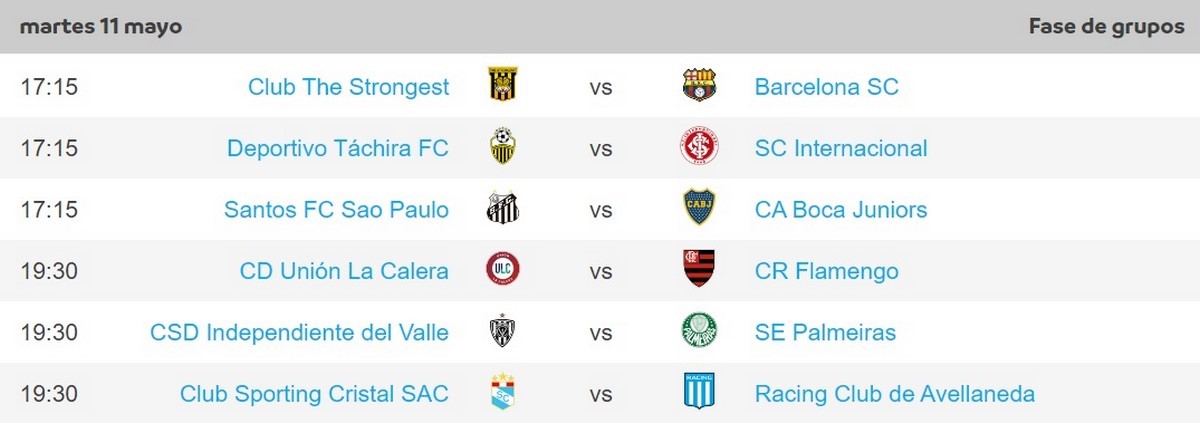 La programación se abrirá a las 5:15 p.m., hora de Colombia, con tres partidos. The Strongest recibirá a Barcelona, que ha ganado todos sus partidos; Deportivo Táchira será local de Internacional; y Sao Paulo recibirá a Boca Juniors, en uno de juegos más llamativos del día.