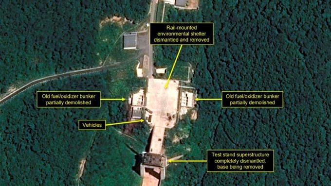 Las fotos captadas por satélites comerciales desvelan que el régimen ha comenzado a desmantelar el banco de pruebas para motores de combustible líquido, usado para desarrollar tecnología clave para los cohetes espaciales y misiles balísticos intercontinentales (ICBM) del programa de armamento norcoreano.