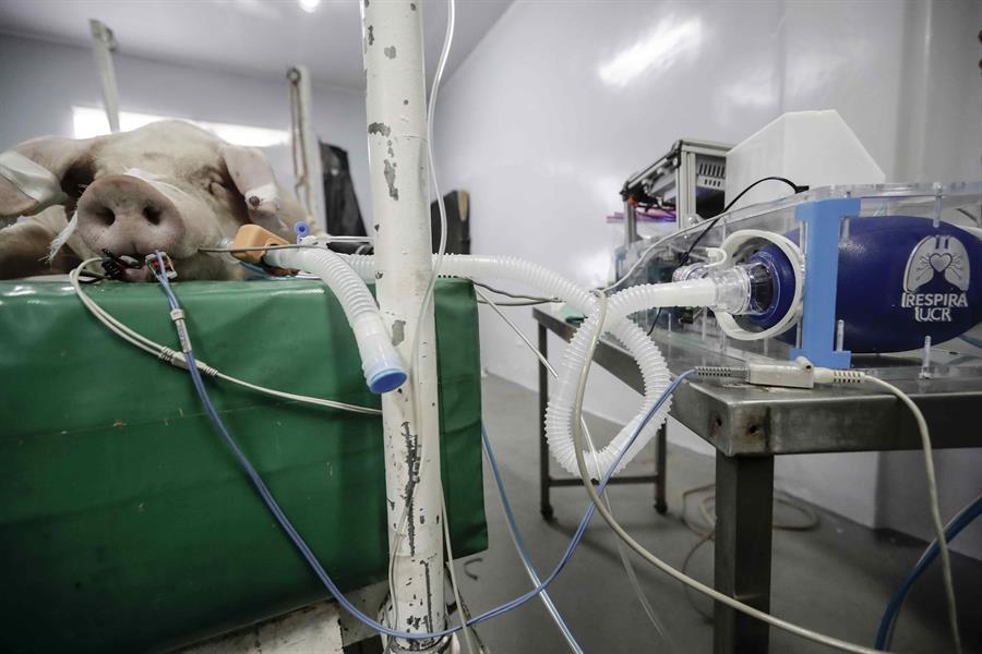 En esta fase, el ensayo fue realizado con cerdos, ya que estos animales poseen una capacidad pulmonar similar a la de los humanos, y la información obtenida servirá para estudiar la posible aplicación del dispositivo en pacientes con el COVID-19.