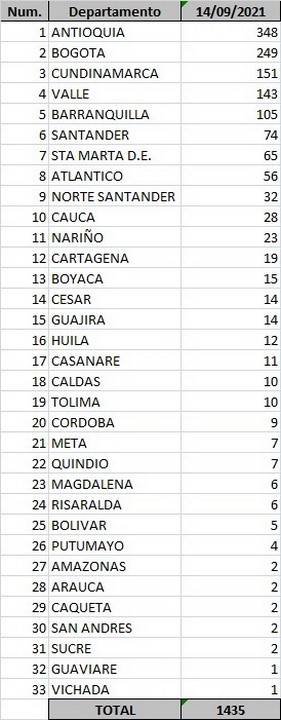 En el reporte se registra que Antioquia es el territorio con mayor número de contagios reportados en las últimas horas con 348 casos.