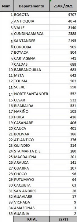 El Ministerio de Salud informó la cifra de personas contagiadas en Colombia, y este viernes 25 de junio se reportaron 32.733 nuevos contagiados, sin embargo, 30.501 personas le ganaron la batalla al virus.