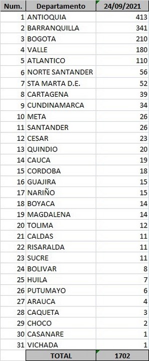 18.267 casos activoshttps://t.co/SiKTpTleFm pic.twitter.com/WipcUCbvsa— MinSaludCol (@MinSaludCol) September 24, 2021