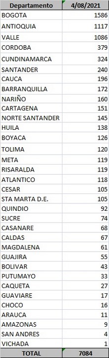El Ministerio de Salud informó la cifra de personas contagiadas de Covid-19 en Colombia, y este miércoles4 de agosto se reportaron 7.084 nuevos contagiados, sin embargo, 9.214 personas le ganaron la batalla al virus.