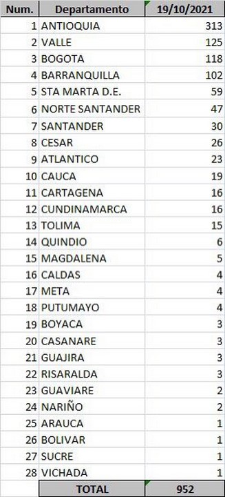 El Ministerio de Salud informó la cifra de personas contagiadas de Covid-19 en Colombia, y este martes 19 de octubre se reportaron 952 nuevos contagiados, sin embargo, 1.394 personas le ganaron la batalla al virus.