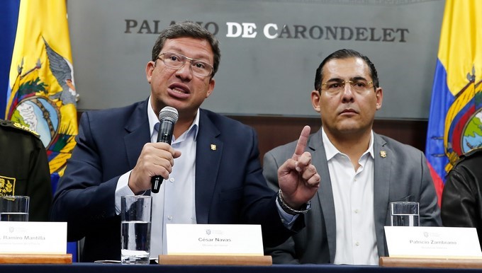 Los ministros ecuatorianos de Defensa, Patricio Zambrano, y del Interior, César Navas, presentaron su renuncia al presidente del país, Lenín Moreno, a raíz del deterioro de la seguridad en la frontera con Colombia, confirmó hoy el Gobierno.