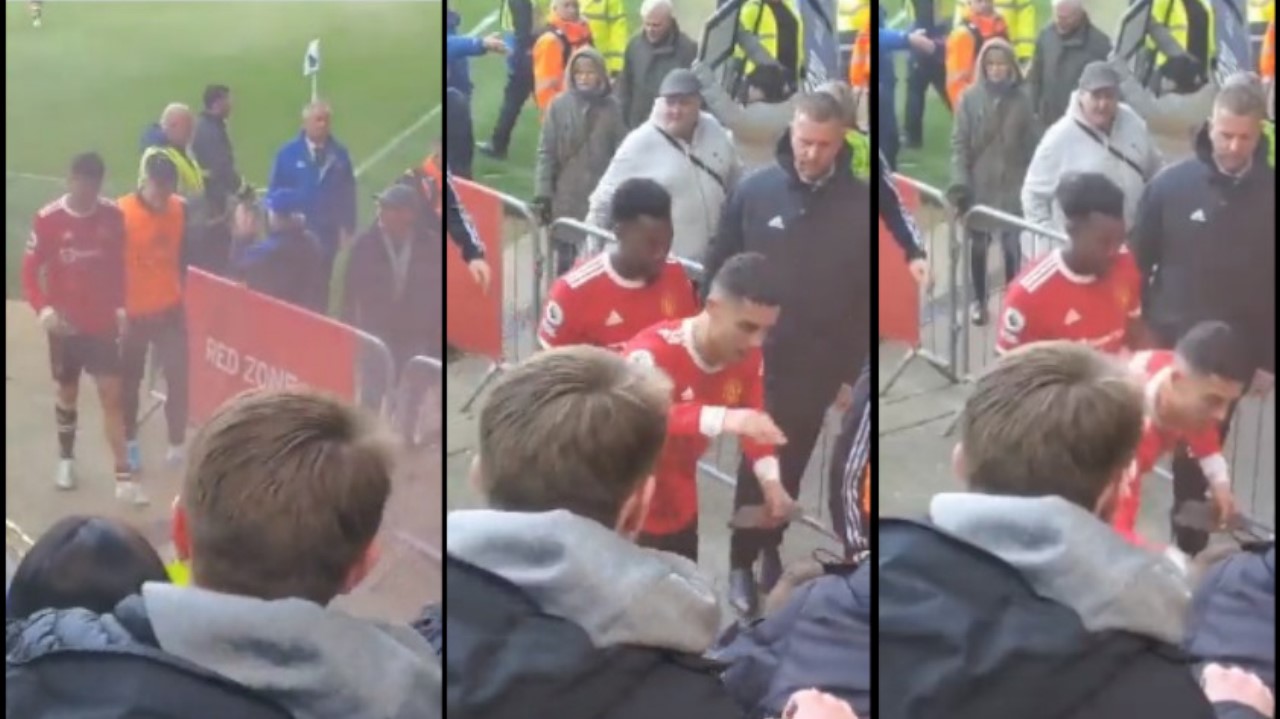 En redes sociales. han viralizado un video de la salida de Cristiano Ronaldo de la cancha. Al parecer, estaría molesto por lo que habría golpeado la mano de uno de los asistentes. El celular habría quedado destruido en el suelo.