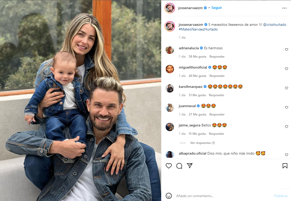 En la red social del también actor se puede ver una fotografía que compartió junto a su esposa y su hijo menor, donde están muy combinados con ropa denim y el bebé se ve muy sonriente.