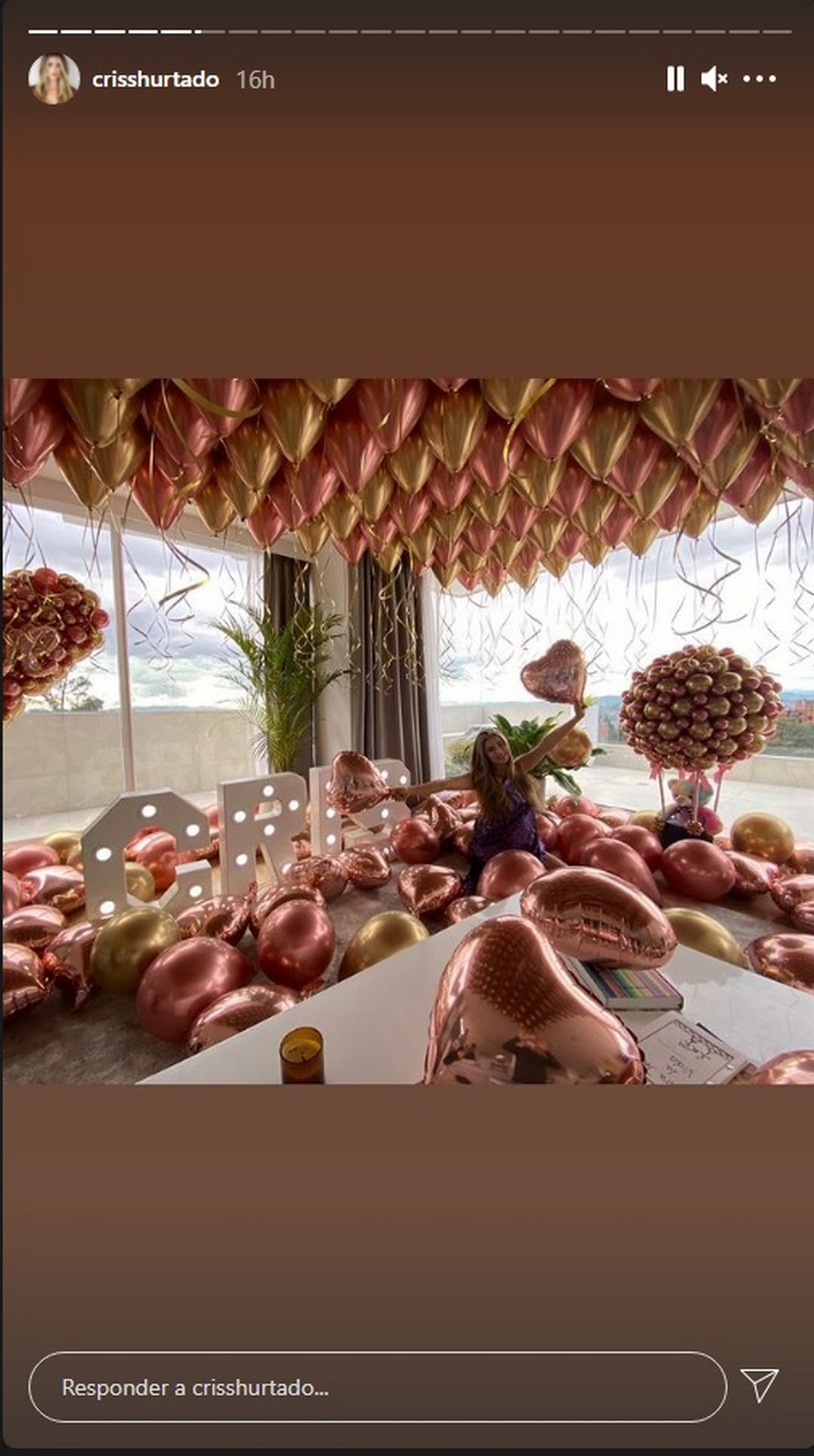 En redes sociales lo que llamó la atención fue la cantidad de bombas de colores rosada y dorada que utilizó Cristina para festejar su año más de vida.