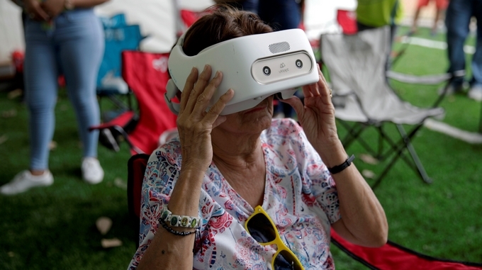 “Es genial, es como si estuvieras dentro de la Biblia”, declaró a Efe la venezolana Rebeca Robinson, tras quitarse una de las 75 gafas de realidad virtual con las que cuenta el parque.