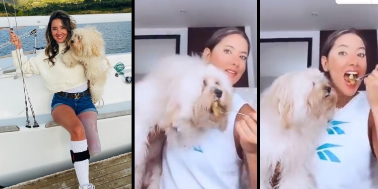 Daniella Álvarez le da de comer a su perro con el mismo tenedor que ella usa para comer pic.twitter.com/tSm63Oa0nw