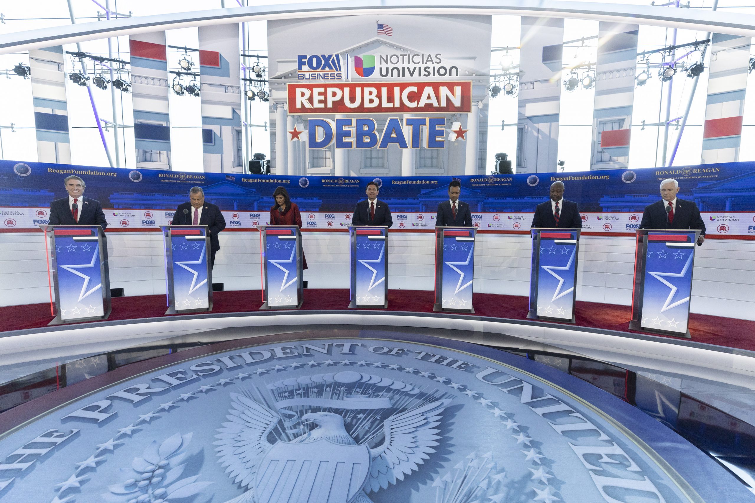 Superaron la criba el exvicepresidente de EE.UU. Mike Pence; Ron DeSantis; Ramaswamy y la exembajadora ante la ONU y exgobernadora de Carolina del Sur Nikki Haley. Asimismo, Christie, el senador de Carolina del Sur Tim Scott y Doug Burgum, gobernador de Dakota del Norte.