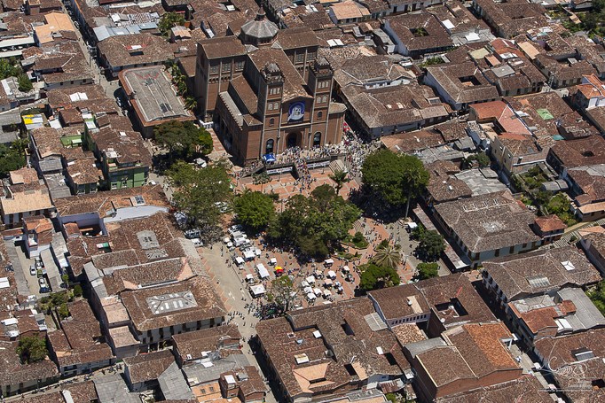 Asimismo los soldados dispersaron desde los aires 300 mil estampas con la imagen de la primera santa colombiana desde los cielos jericoanos, mientras Alejandro Castillo Bautista, fotógrafo profesional y experto en tomas aéreas, retrataba la actualidad de Jericó durante las fiestas de la canonización de la Madre Laura Montoya Upegui.