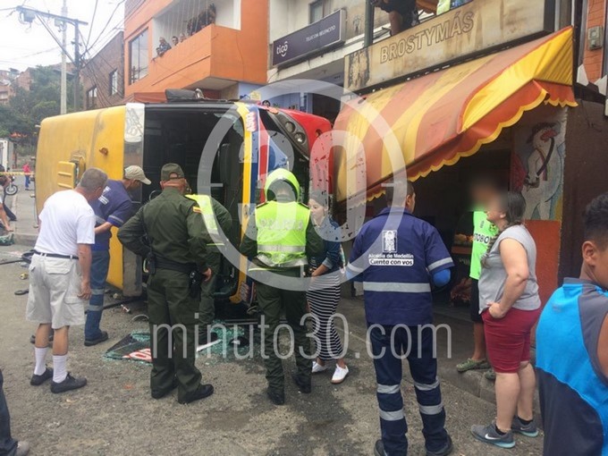 Minuto30.com .- Un accidente de tránsito se registró la tarde de este sábado 16 de diciembre en el suroccidente de Medellín. cuatro personas habrían resultado heridas. Según informes extraoficiales, un bus de servicio público, en el que se movilizaban 14 personas se habría quedado sin frenos, yendo a parar contra un asadero de pollos. Relatan […]
