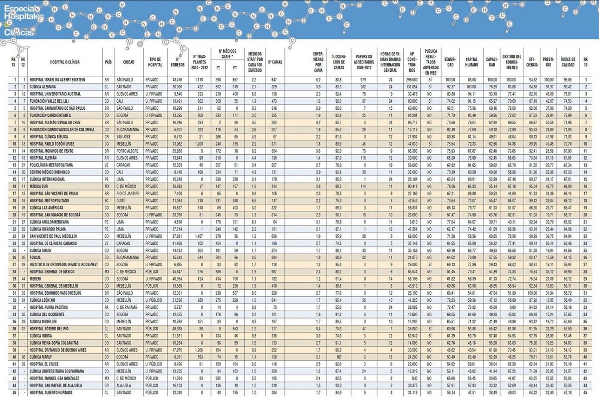 El ranking de calidad para instituciones hospitalarias que cumple cinco años evaluando el desempeño de instituciones públicas y privadas en América Latina, recientemente reveló el listado oficial de clasificación.