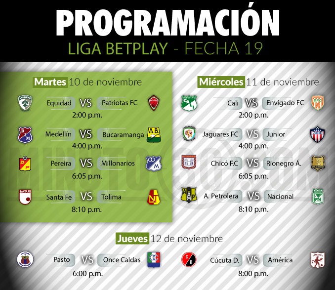 Minuto30.com- Con cuatro partidos se abrirá este martes la programación de la fecha 19 de la Liga BetPlay I-2020, que se torna definitiva para muchos equipos.