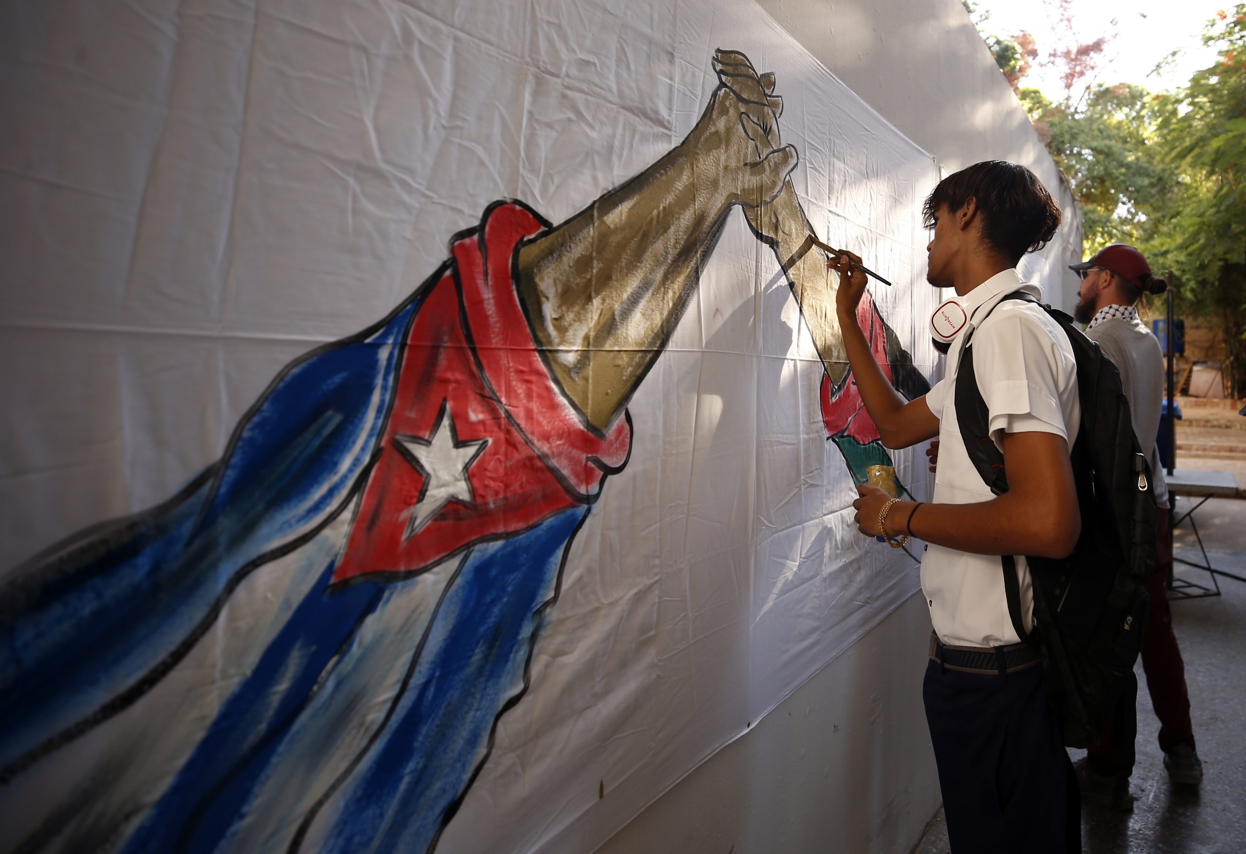 Entre los participantes se encontraban jóvenes palestinos que cursan estudios en la isla, y algunos declamaron poemas y cantaron canciones en el acto convocado por la UJC y otras organizaciones estudiantiles próximas al Partido Comunista de Cuba (PCC, único legal).