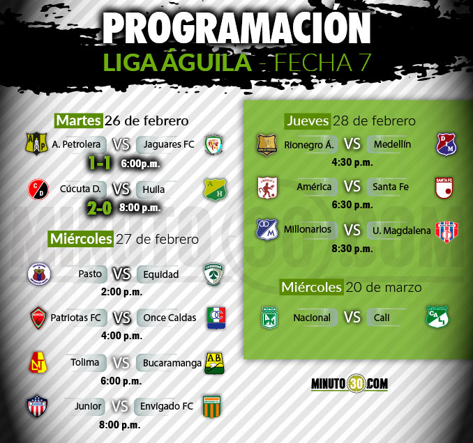 Minuto30.com- Cúcuta Deportivo retomó el liderato de la Liga Águila I-2019 tras su triunfo frente a Atlético Huila, en la apertura de la fecha 7 de la Liga Águila I-2019, que también tendrá programación miércoles y jueves.