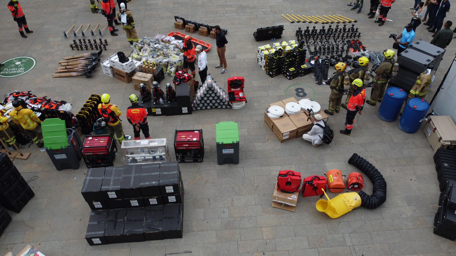 Entre las más de 1.600 herramientas y elementos entregados se incluyen mangueras, equipos de protección personal, equipo completo para el grupo USAR de Búsqueda y Rescate urbano y trajes para combatir incendios estructurales y forestales, entre otros.