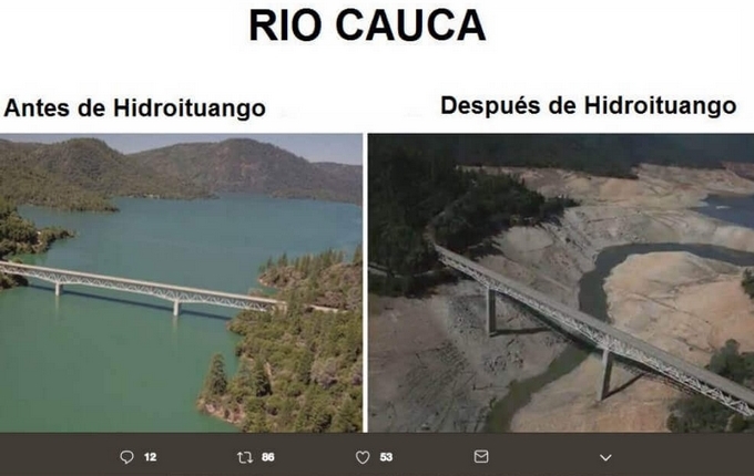 Durante la delicada situación que se presenta en el río Cauca debido al cierre de compuertas en el proyecto Hidroituango se hace fácil para que las noticias falsas se vuelvan virales en las redes sociales, en uno de estos casos se presentó al río Feather de California, Estados Unidos, como si fuera el río Cauca luego de reducir su caudal.