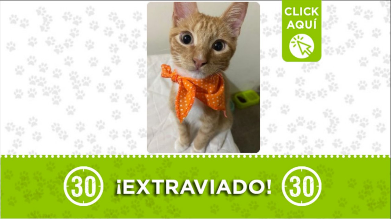 Este gatico llamado “Dalton” se perdió en el barrio Quintas de San Javier, Medellín.