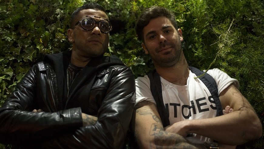 El jugador brasileño del FC Barcelona Dani Alves y su socio el diseñador Juan José Blanco de la Osa, posan durante una entrevista con Efe en la que han explicado su proyecto “Bam Bam” con el que Alves entrará este verano en el mundo de la moda al lanzar una línea de gafas. EFE
