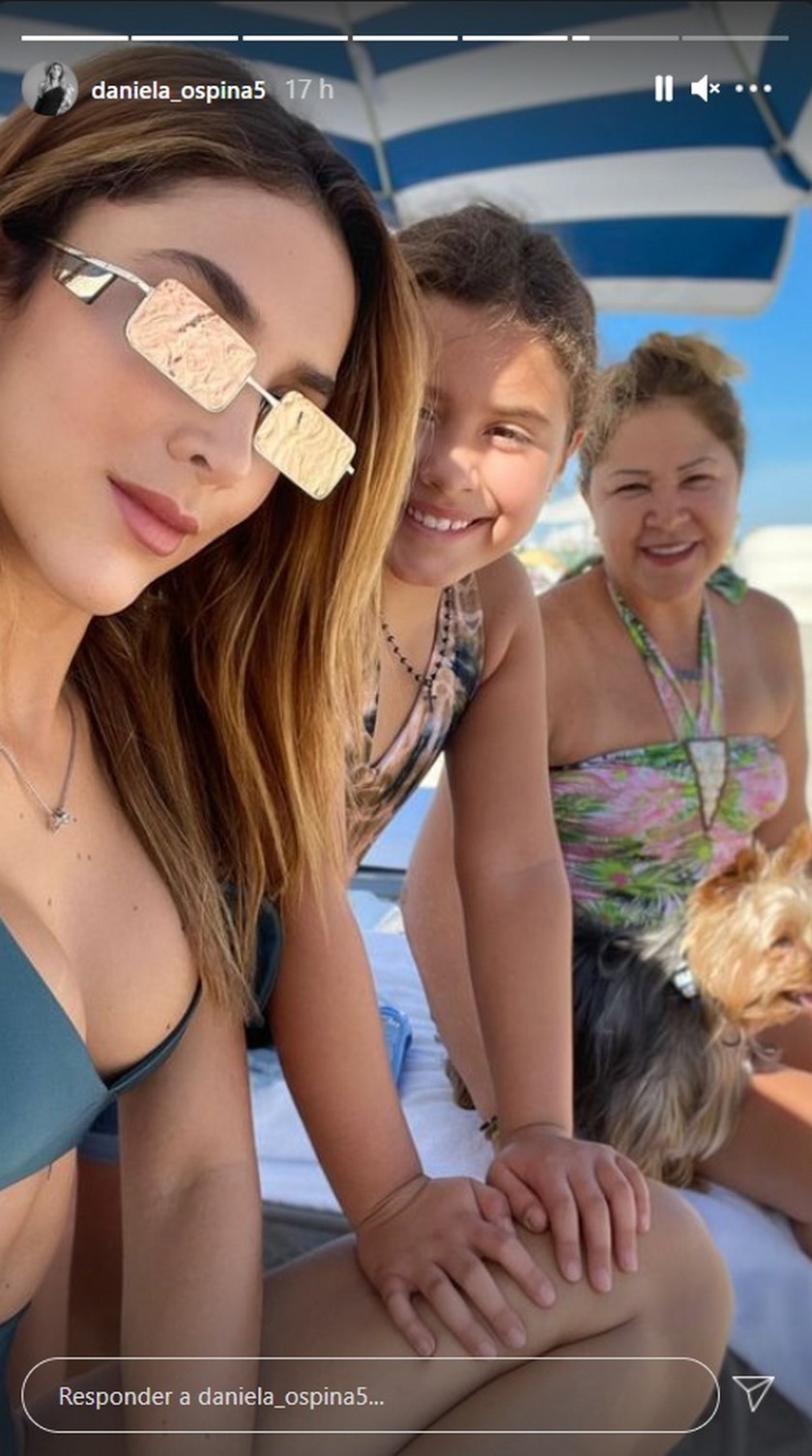 Dejando ver sus larga piernas y su abdomen marcado, Daniela se llevó cientos de halagos por su figura. Tomando el sol en una playa, con su mamá y su hija Salomé, fruto del amor con el futbolista James Rodríguez, se le vio muy feliz.