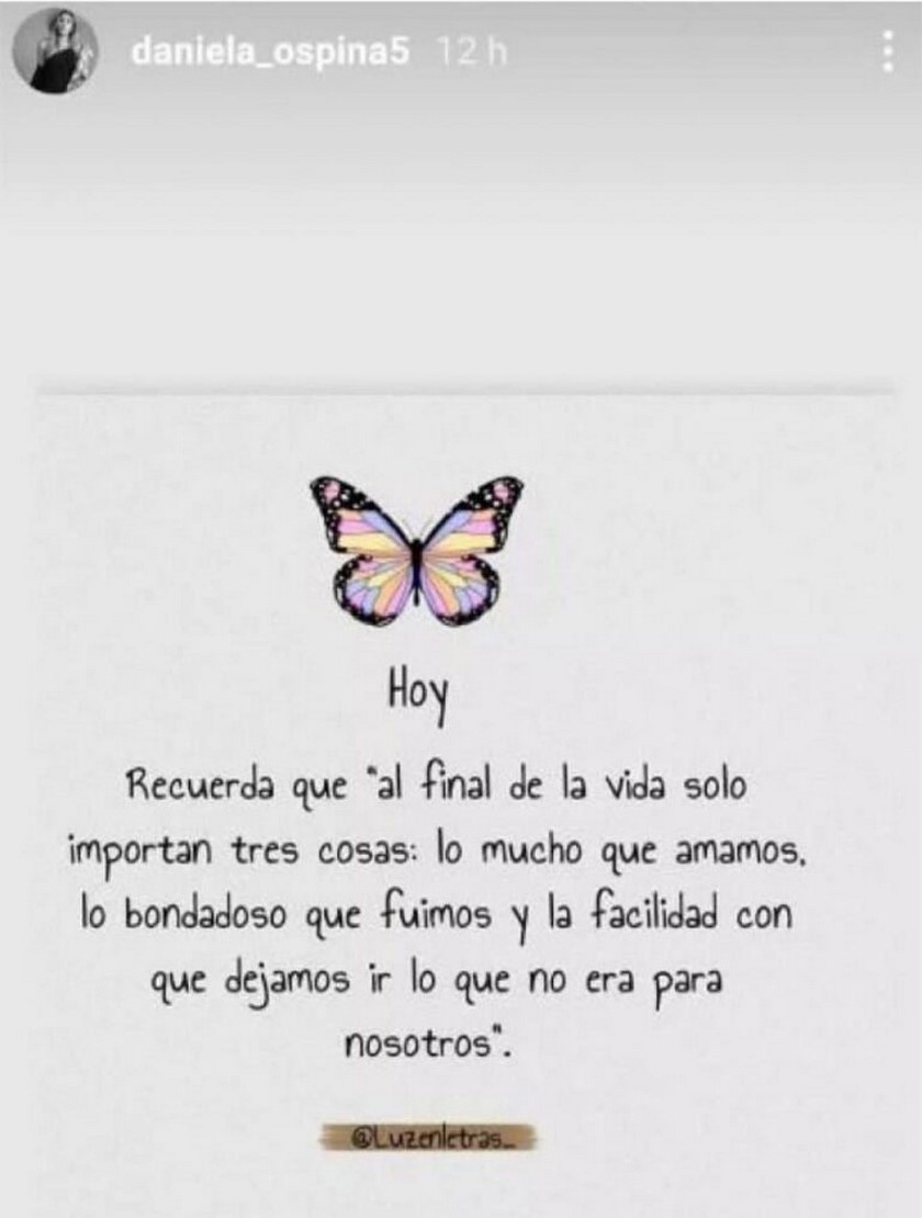 Daniela Ospina, expareja de James Rodríguez y con quien tuvo a Salome, publicó una imagen con un texto, el cual sería para el productor de música Harold Jiménez, con quien había comenzado su relación en 2018.