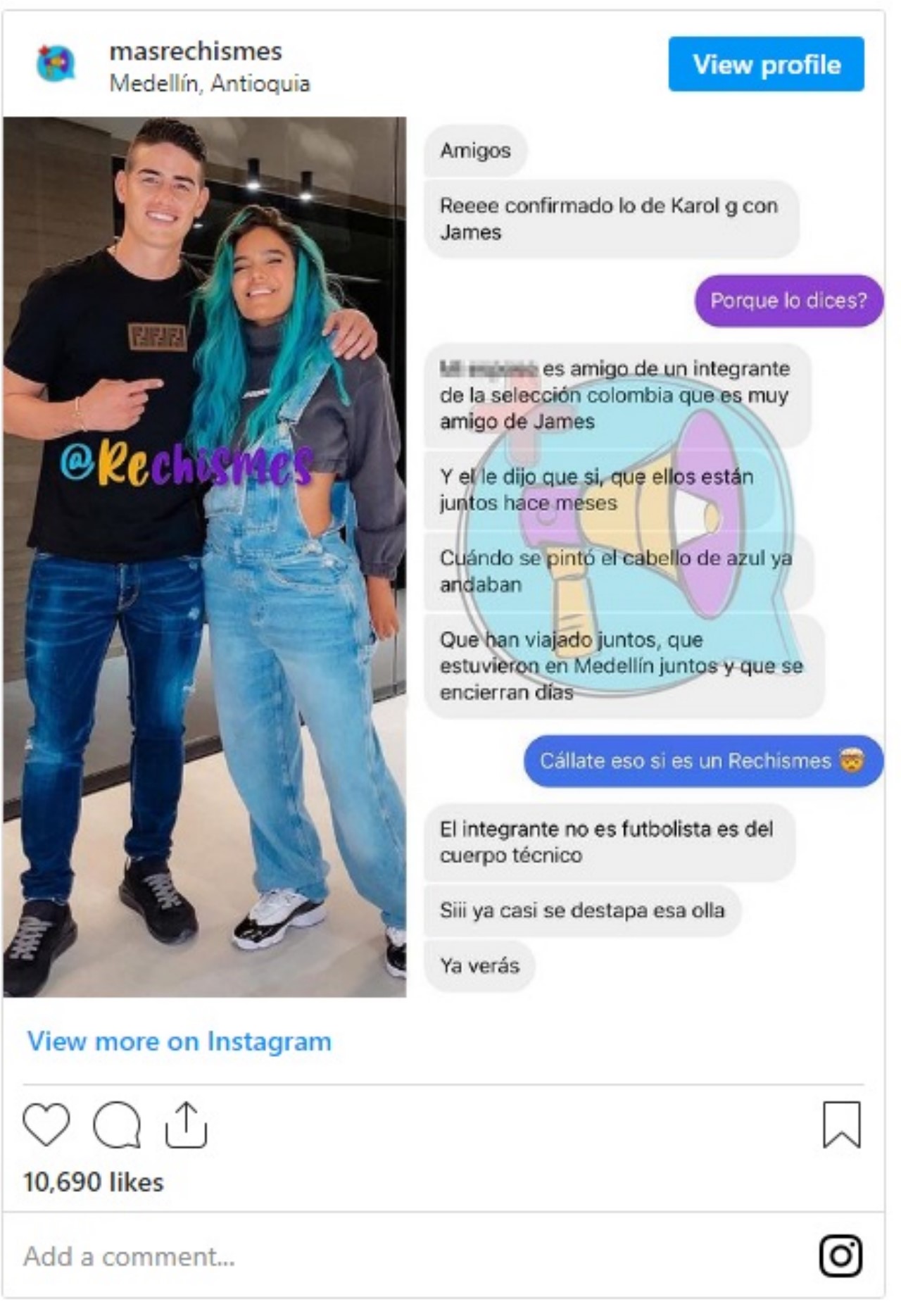 Hace poco hicieron una publicación en Instagram en la que daban a conocer la presunta relación entre los famosos colombianos, pero lo que llamó la atención de los internautas es que Daniela Ospina, expareja de James y madre de la hija del futbolista, le dio ‘Me gusta’ a la publicación de Telemundo que hablaban de la posible nueva pareja del 10 de la Selección Colombia.
