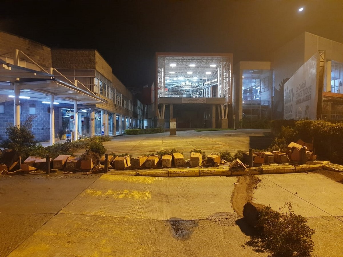 Luego del bloqueo que se presentó en la tarde del pasado miércoles 19 de mayo en la glorieta contigua a la Terminal de Transportes de Manizales, la Administración Municipal dio a conocer imágenes de cómo quedaron las instalaciones de la Terminal.