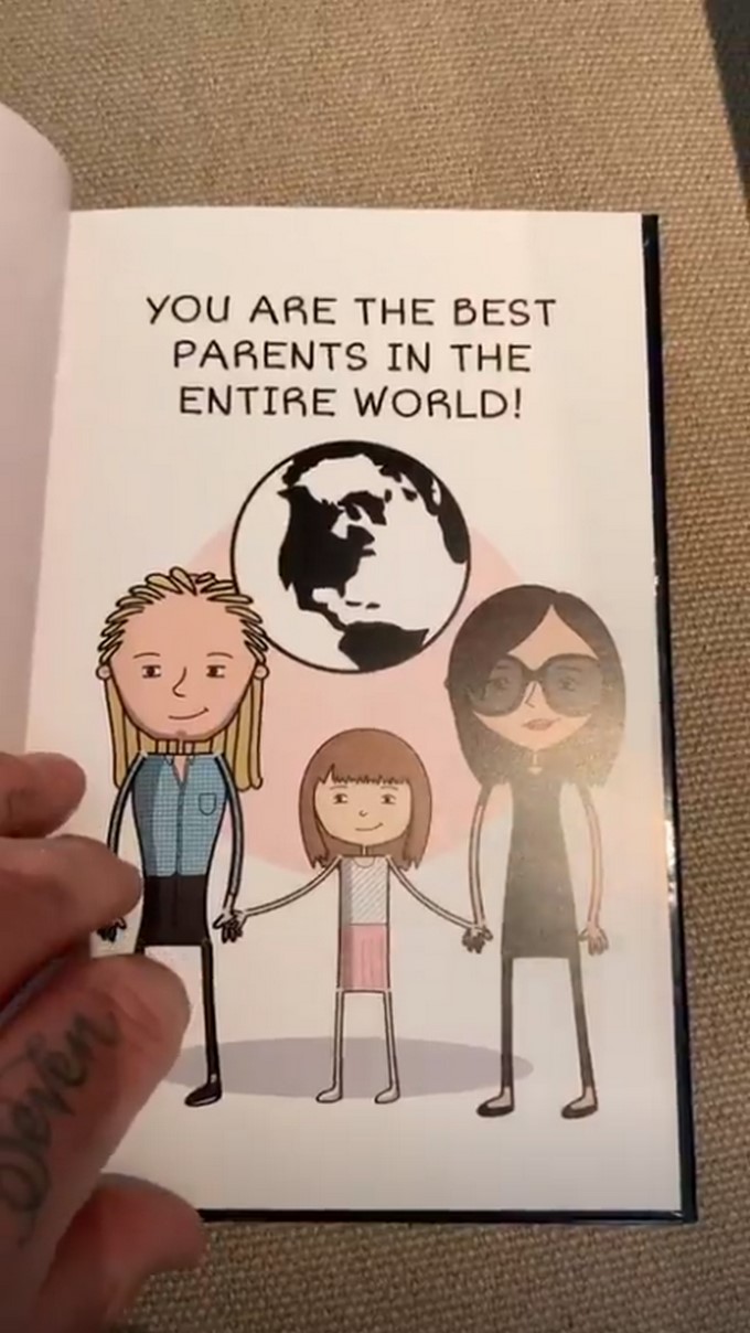 De hecho, fue la pequeña Haper Seven quien le regaló uno de los detalles más tiernos a sus padres con motivo de su aniversario. Se trata de un libro de dibujos animados que relata la historia de amor entre el exfutbolista y la diseñadora de modas y termina mostrando en caricaturas a toda la familia Beckham, tal como lo mostró David en sus historias de Instagram.