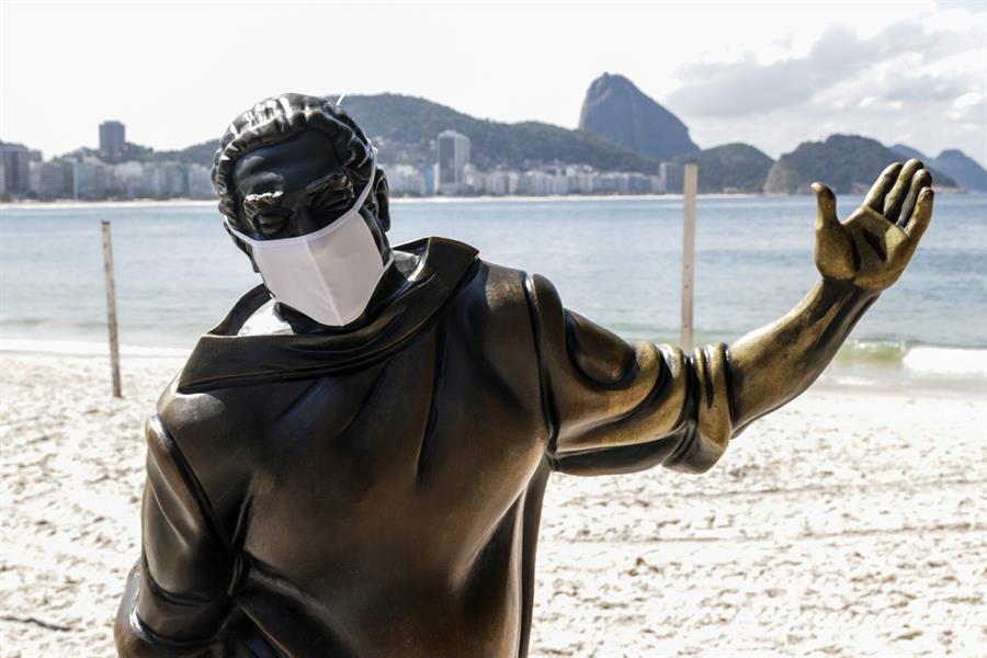 La Alcaldía de Río equipó con mascarillas a más de 40 estatuas de la “Cidade Maravilhosa” para alertar a la población sobre su obligatoriedad a partir de este jueves para frenar la propagación del coronavirus.