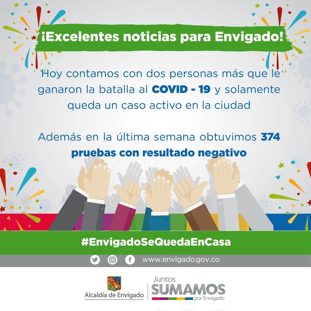 El municipio de Envigado informó que de los 32 casos positivos por COVID-19, solo uno está activo.