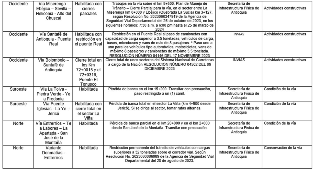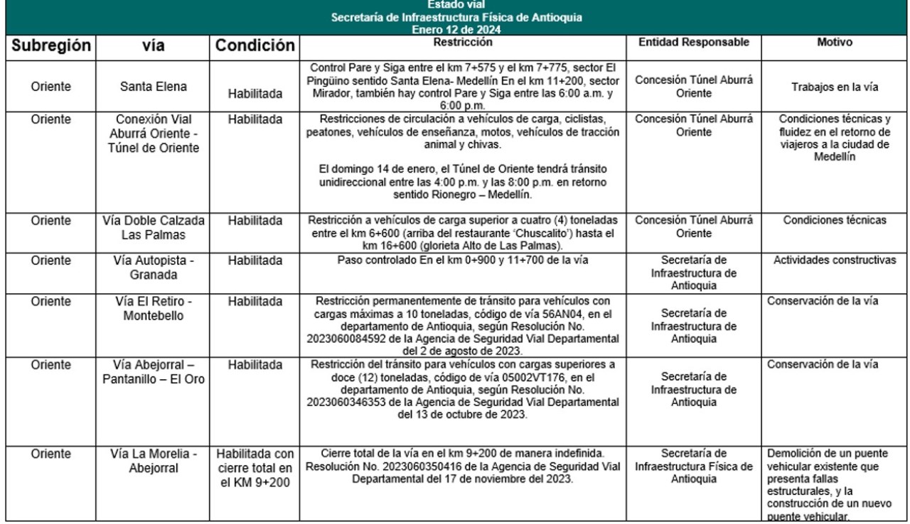 A continuación, un resumen de las restricciones vigentes para el tránsito en el departamento de Antioquia.