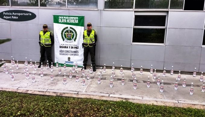 En la zona de carga del aeropuerto Olaya Herrera de Medellín fueron incautadas 90 botellas de licor de tipo Vodka que venían procedentes de la isla de San Andrés. Las botellas de licor no contaban con el manifiesto de aduana y tampoco estampillas. El material fue incautado y puesto a disposición de las autoridades competentes.
