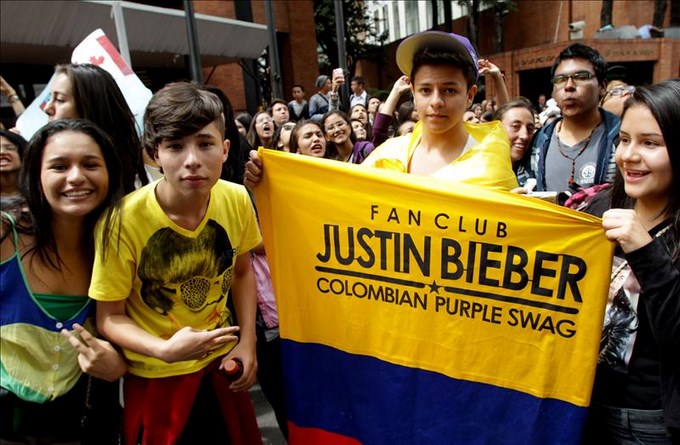 Decenas de adolescentes colombianos y de algunos países vecinos se concentraron hoy frente a un hotel de Bogotá con la esperanza de ver al ídolo canadiense Justin Bieber, que mañana dará el único concierto en Colombia de su gira “Believe Tour“.