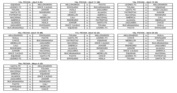 Minuto30.com- La Dimayor dio a conocer este miércoles en la tarde el fixture con las 19 fechas de la primera fase de la Liga Águila I-2018.