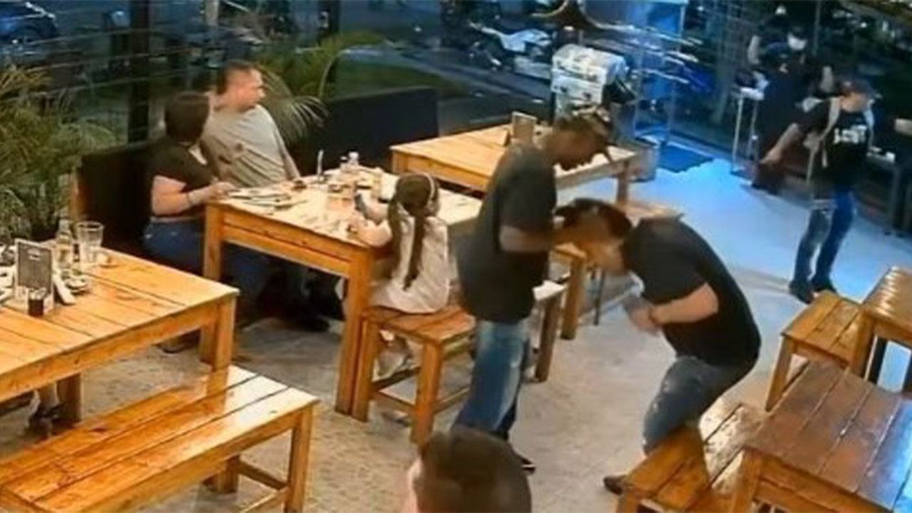 En el establecimiento se encontraban disfrutando varias familias, de hecho se nota como una niña se queda inmóvil y luego de que pasa el robo, corre a los brazos de quien sería su madre.