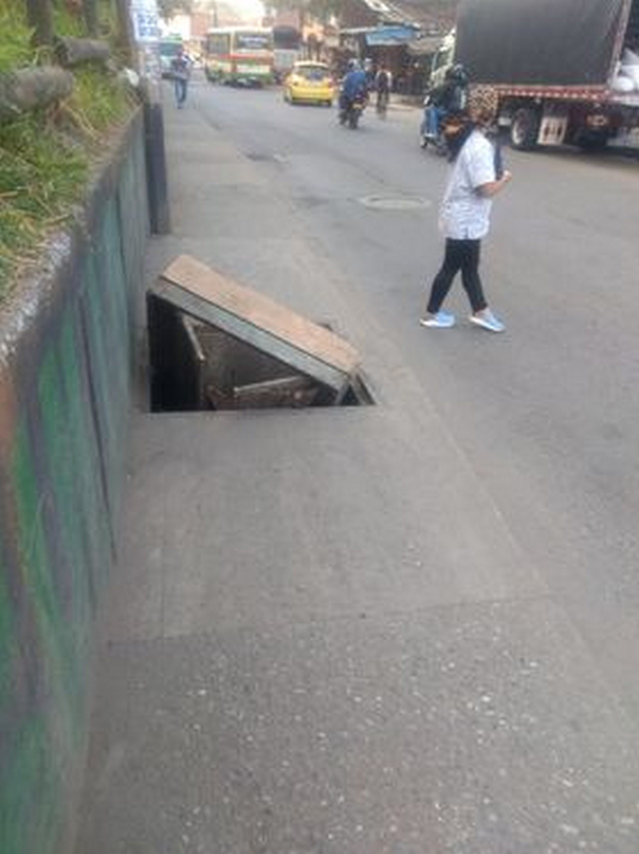 Y es que de acuerdo a la denuncia ciudadana, el hueco se encuentra más específicamente en la cra 52 con calle 112, entre el barrio El Playón y Andalucía, cerca al Parque Ambiental Finca La Mesa.
