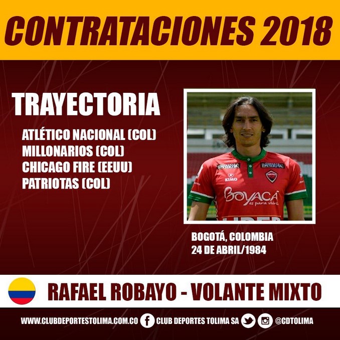 Minuto30.com- Deportes Tolima confirmó en las últimas horas la contratación de un nuevo jugador de cara a los compromisos de 2018.