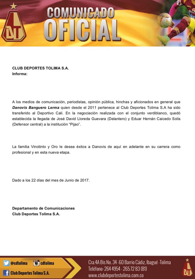 En las últimas horas Deportes Tolima confirmó algunos movimientos en su nómina de cara a su participación en la Liga Águila II-2017.