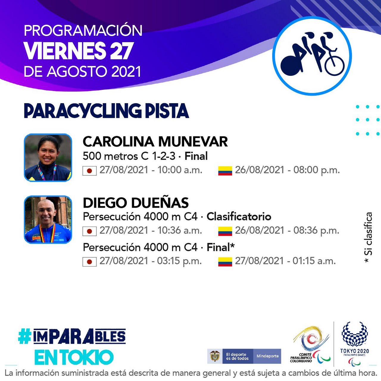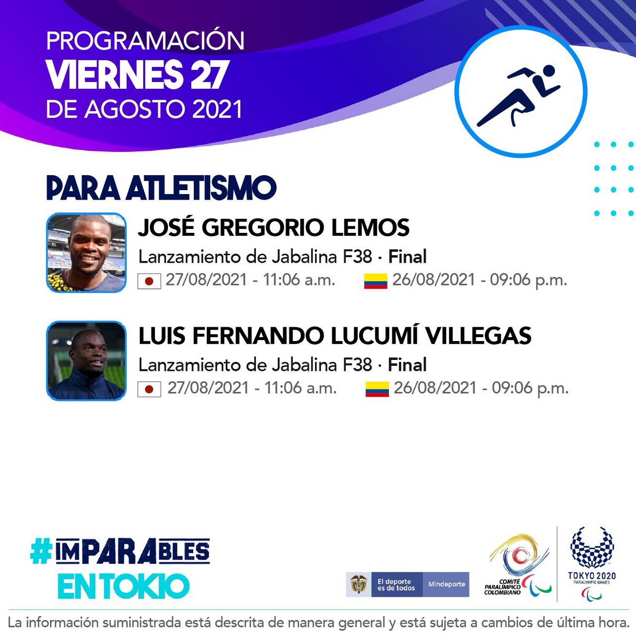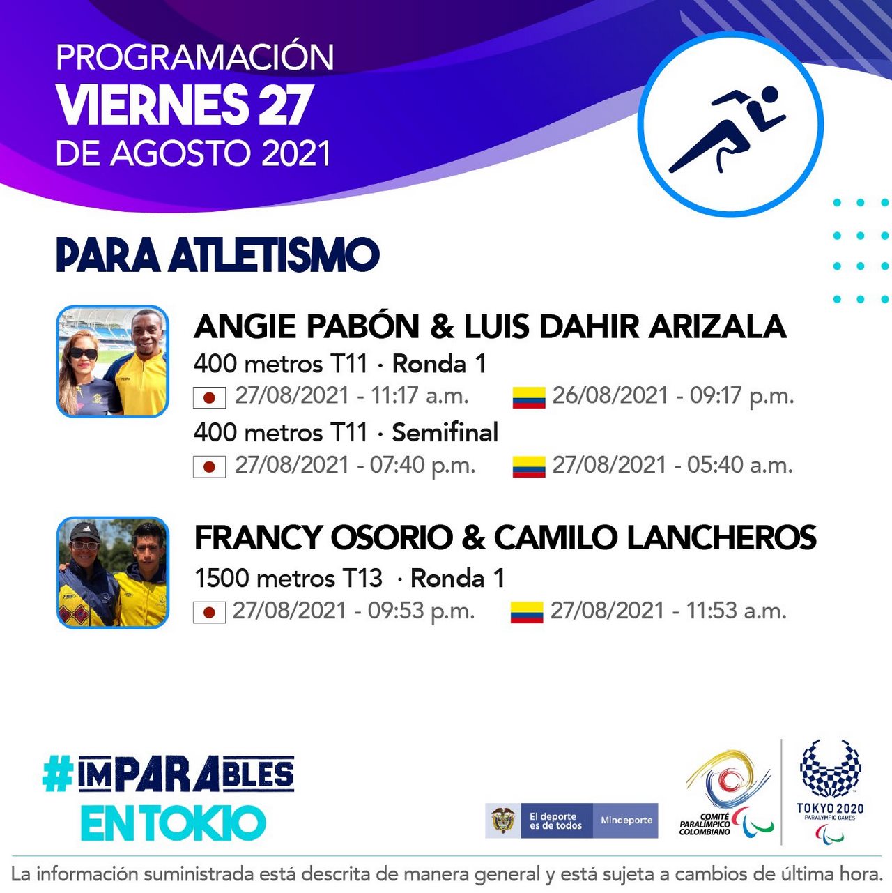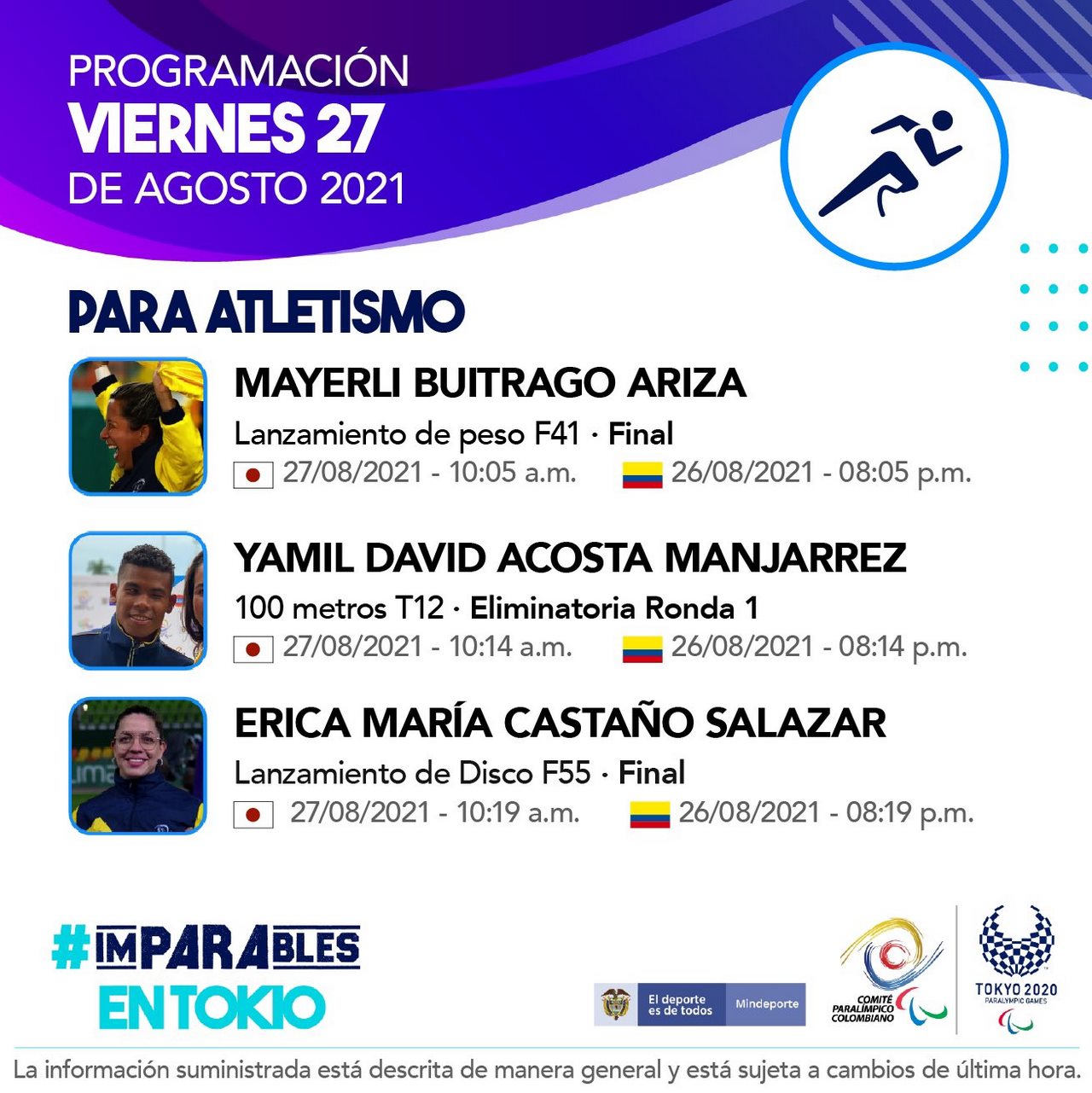 • Programación de los deportistas colombianos, para tercera jornada Juegos Paralímpicos