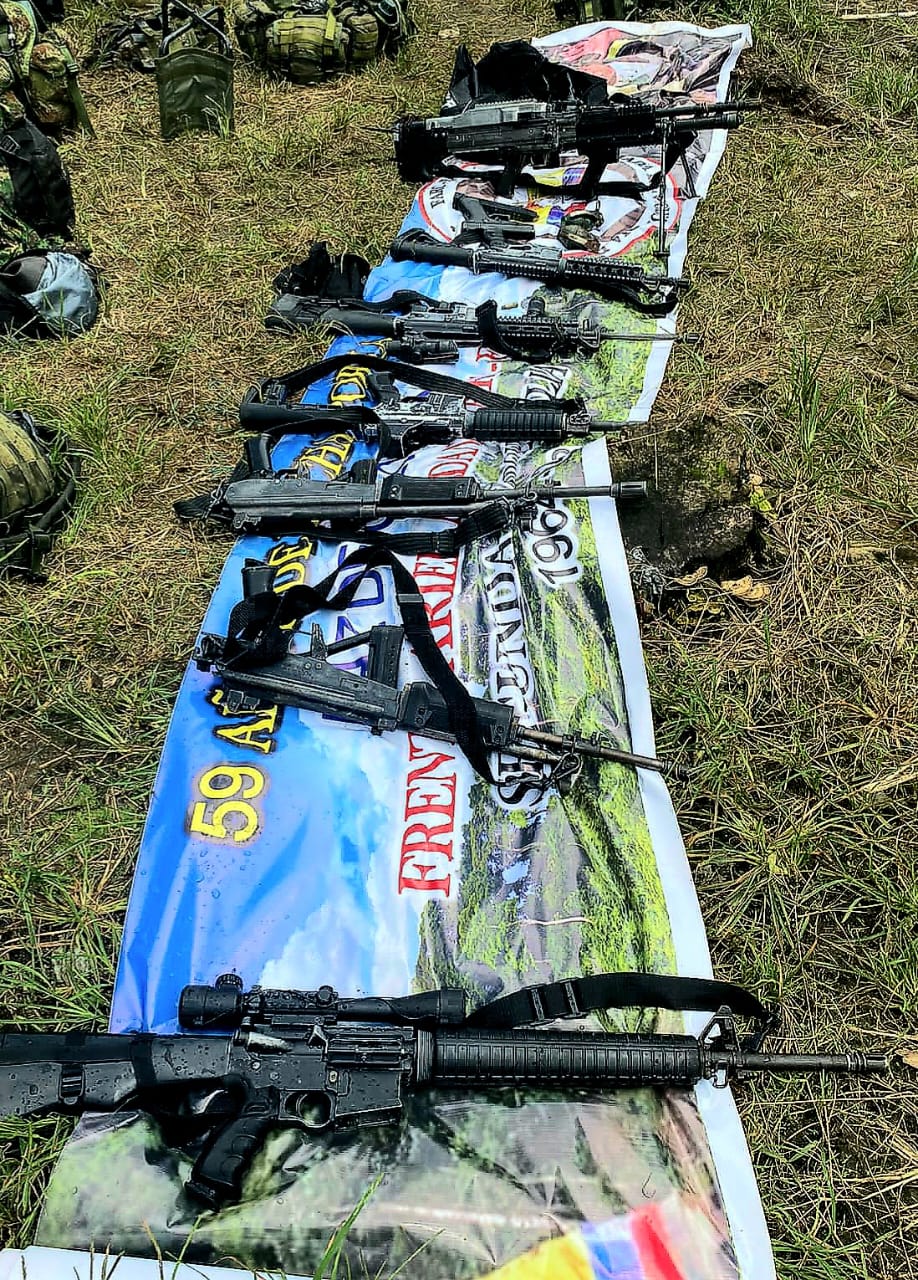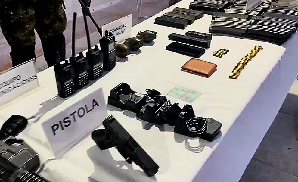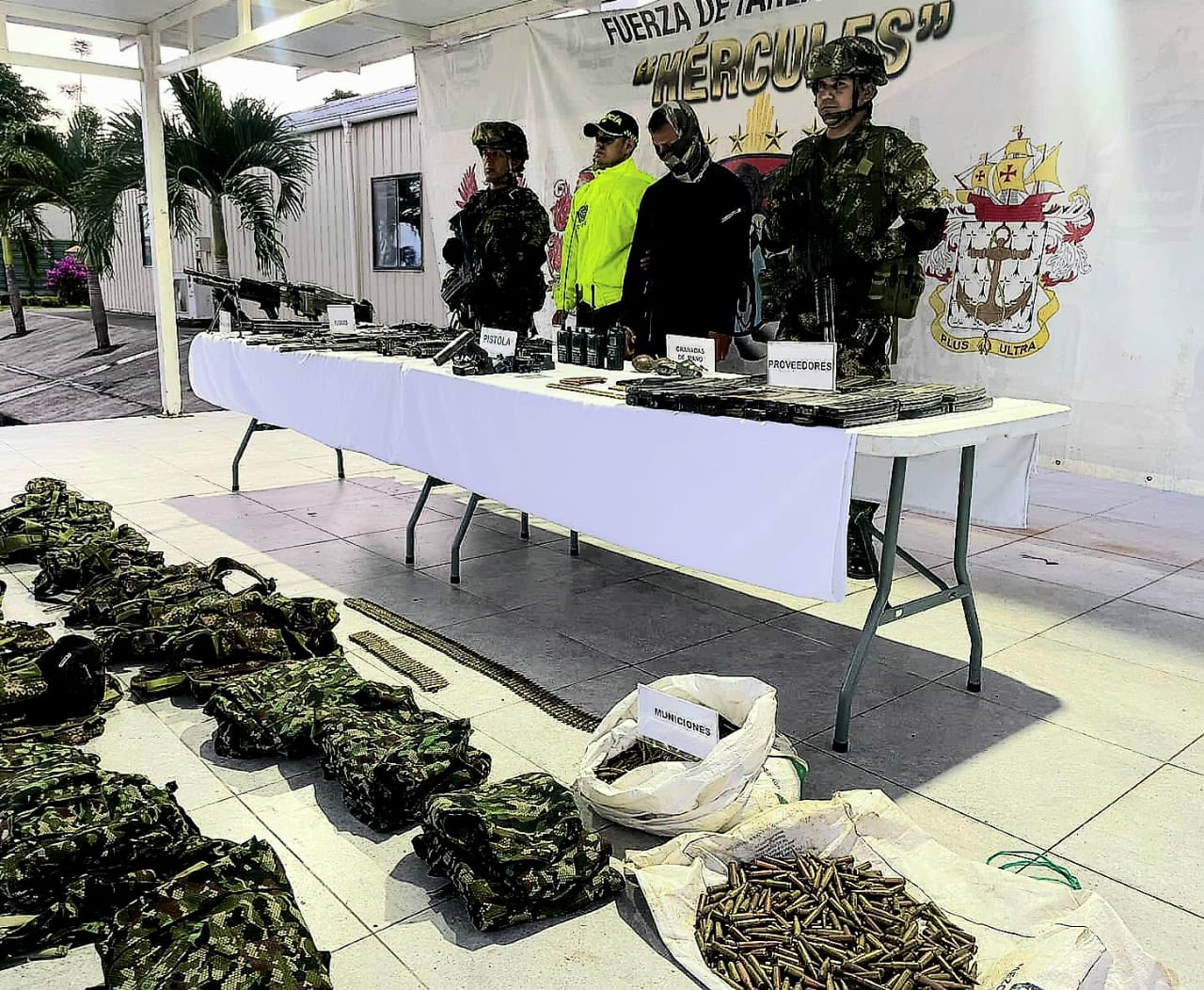 Allí incautaron una ametralladora, siete fusiles, una pistola, tres granadas de mano, proveedores de diferentes denominaciones, más de 2100 unidades de munición calibre 5.56mm, abundante material de intendencia y comunicaciones.