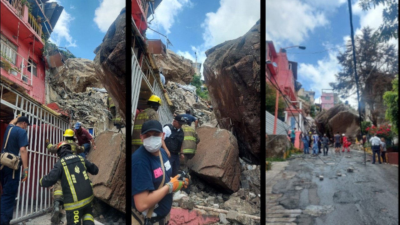 También confirmó que son cuatro viviendas afectadas de forma directa por el derrumbe de una parte del cerro, además de que continúa la búsqueda de personas.