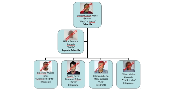 La banda conformada por ‘Flaco’, ‘Patilla’, ‘Zarco’, ‘Cris’, ‘Maicon’ y ‘Frank’, delinquía en los barrios Bananza, El Piñal Caraño, Santo Domingo, Porvenir y Paraíso del municipio de Quibdó.