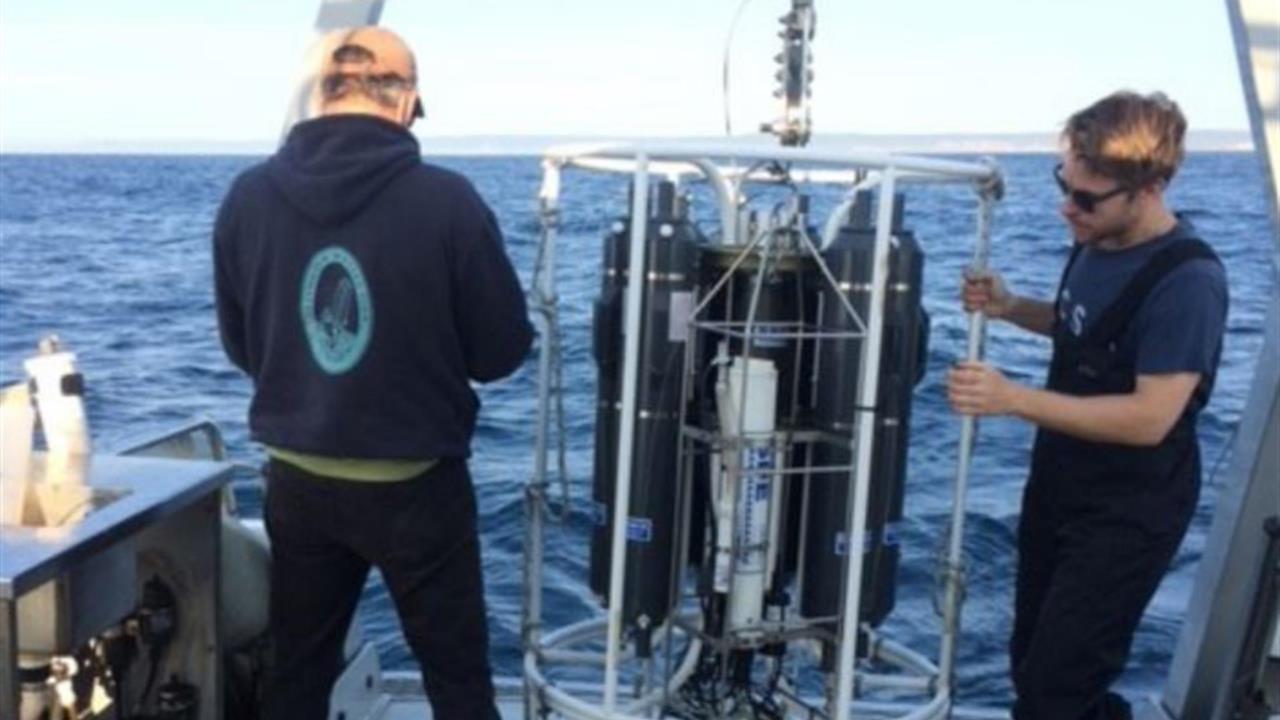 Los investigadores se preparan para lanzar el equipo de muestreo en Port Hacking, al este de Australia. Fotografía cedida por la Universidad de Tecnología de Sidney. EFE