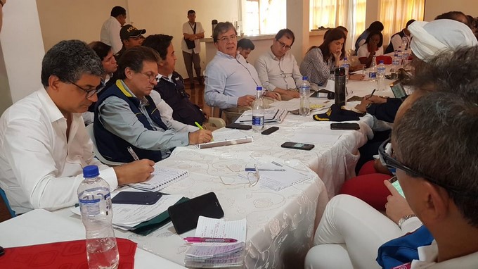 En encuentro con autoridades del Chocó, Canciller @CarlosHolmesTru planteó necesidad de buscar reunión con países de Centroamérica permeados por la crisis migratoria.#ColombiaNoPara pic.twitter.com/tmdjS2q8MZ