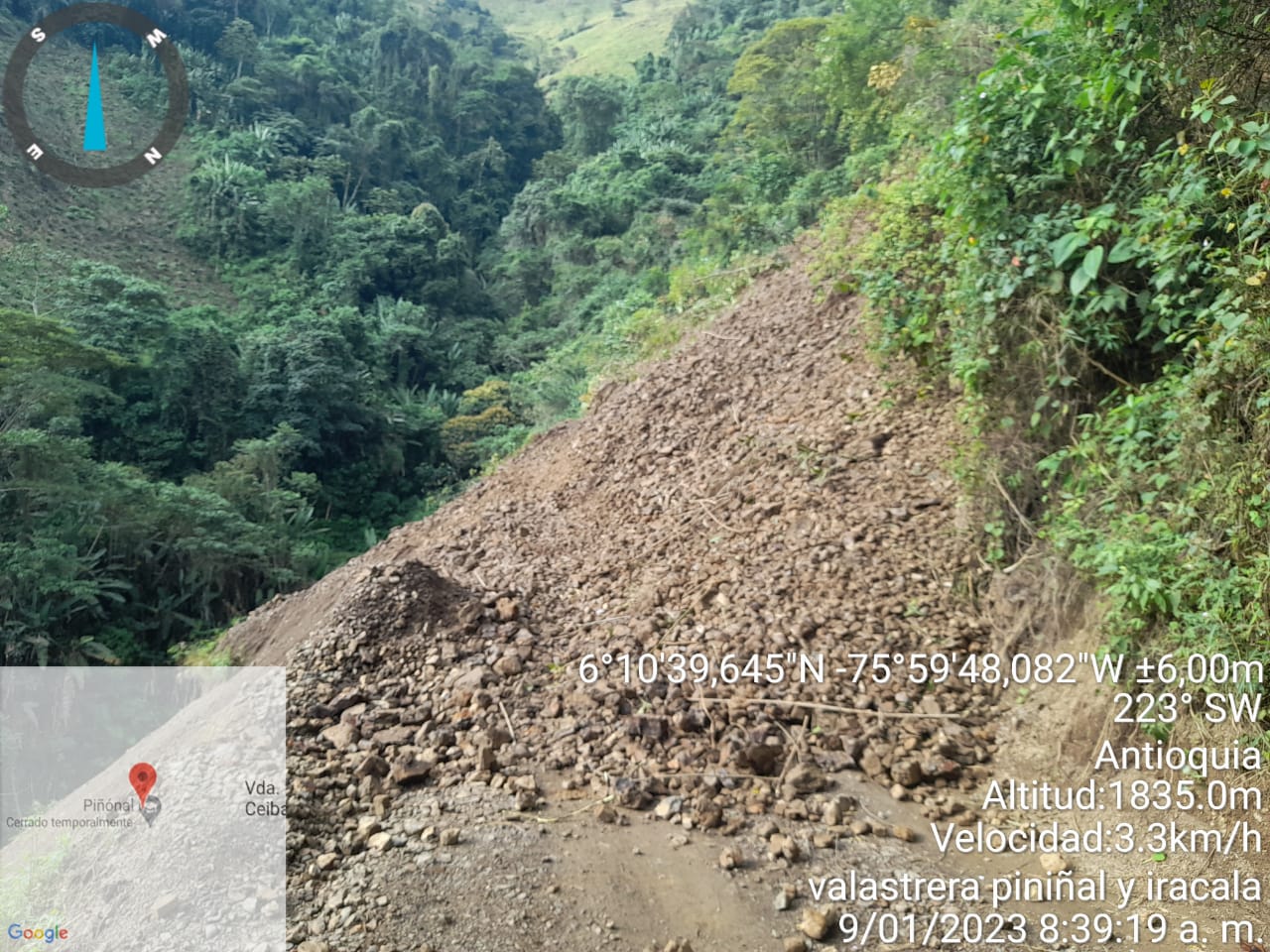 Por su parte, el alcalde local, Juan Manuel Hurtado, explicó que en la madrugada del pasado martes, 10 de enero, se presentó un derrumbe de al menos 3.500 metros cúbicos de tierra en la vereda El Piñonal.