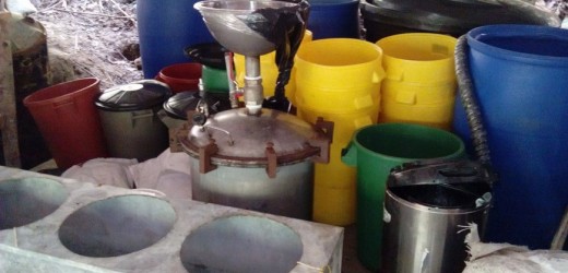 La instalación contaba con cinco estructuras artesanales techadas con plástico negro, dos cilindros de gas de 40 libras de capacidad, una estufa de cuatro puestos, un transformador, dos máquinas para destilar conocidas como marranos, dos condensadores, una planta eléctrica, un marciano, 2.200 galones de insumos líquidos, 250 kilos de insumos sólidos, entre otros elementos, los cuales eran utilizados para realizar la cristalización en el proceso de elaboración de la coca como droga.