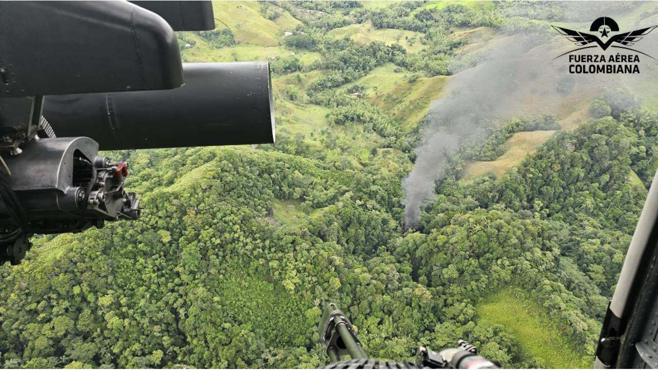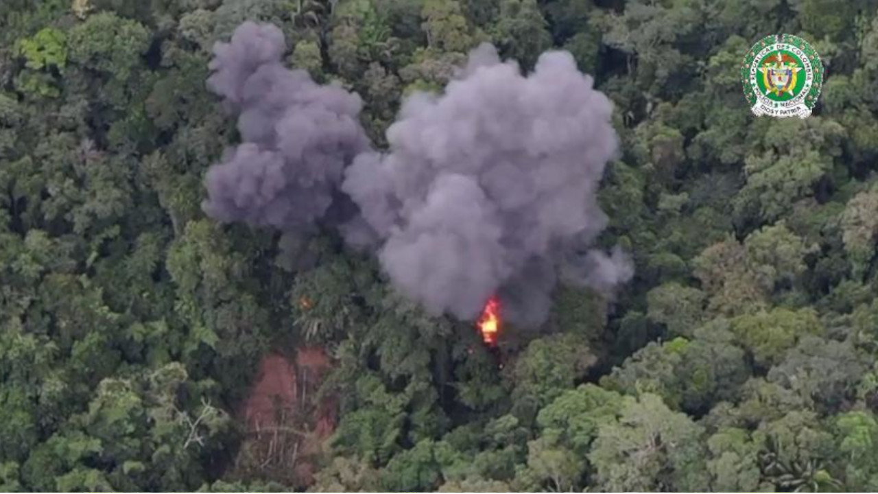 La operación efectuada adelantada por la Policía Nacional y el Comando Aéreo de Combate No 5, con el apoyo de helicópteros de la Fuerza Aérea Colombiana, permitió ubicar con precisión el laboratorio clandestino.